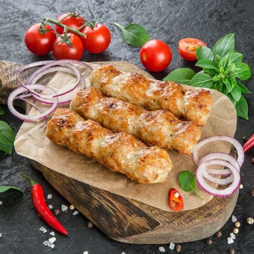 - Люля из свинины 200 гр, - Люля из курицы 200 гр, - Люля из свинина 200 гр, - Соус «Аджика» 50 гр,