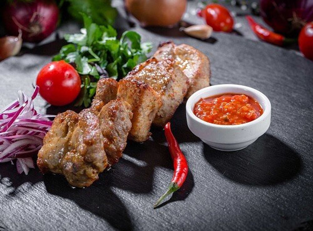 Шашлык из самой мягкой и сочной части свинины, замаринованный с репчатым луком, морской солью и набором ароматных специй.